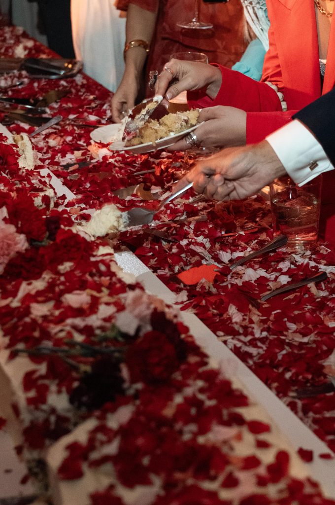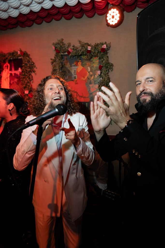 El reto de este evento fue acercar a los clientes de Scalpers al origen sevillano de la marca, sin huir de los valores glamurosos que intenta transmitir. Lejos del enfoque tradicional de las activaciones de marca, aquí no hubo photobooths ni juegos de engagement. La verdadera experiencia fue vivir una noche genuina de arte, flamenco y comunidad. El evento se articuló en torno a un eje muy potente: una gran mesa central, símbolo por excelencia de encuentro, sobremesa y celebración. En ella, sobre ella y alrededor de ella ocurrió todo. Maloko y su grupo abrieron la velada con un pase flamenco que marcó el tono. Luego, una cena tipo banquete, con servicio en bandeja de plata y una mesa central vestida con claveles. Y llegó con el postre: una tarta de 4 metros servida de forma comunitaria. Una manera de mostrar la idiosincrasia andaluza “sin hacerlo” y una buena lección de marketing: un mensaje que no se impone, sino que se insinúa.