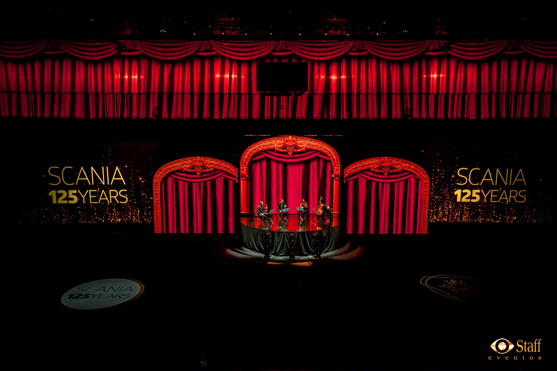 El momento del reveal se integraba con la historia mostrada en el mapping, junto con un acompañamiento de música clásica en directo de la mano de un cuarteto de cuerda y 20 violinistas repartidos en el escenario y entre el público. A la cabina tractora bajando al escenario se le unieron cuatro modelos más de la Next Generation Scania que aparecían en escena entre bambalinas de led, atravesando dos pantallas gigantes y situándose frente al público.