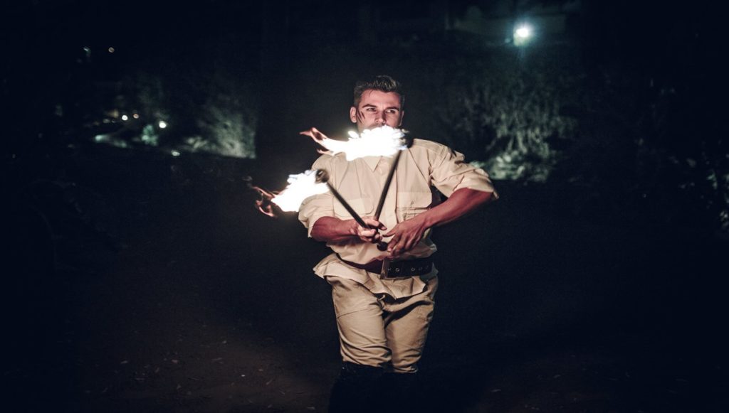 La agencia, además, decidió reforzar esta decoración con iluminación, más motivos florales y plantas salvajes. Para que los asistentes entraran en la historia Beremot desde el principio, se les trasladó desde un hotel donde se les convocó hasta Trocadero Arena en autocares con un hilo musical muy especial: sonidos de aves, animales salvajes, vegetación… y además, un grupo de actores les contó la historia de la marca durante el trayecto. Al llegar al espacio, los asistentes sufrieron un asalto ¡son las cosas que conllevan las aventuras! Obviamente era un grupo de actores que simuló asaltarles y, seguidamente, disfrutaron de un espectáculo en el que el fuego, la danza y la música fueron los protagonistas.