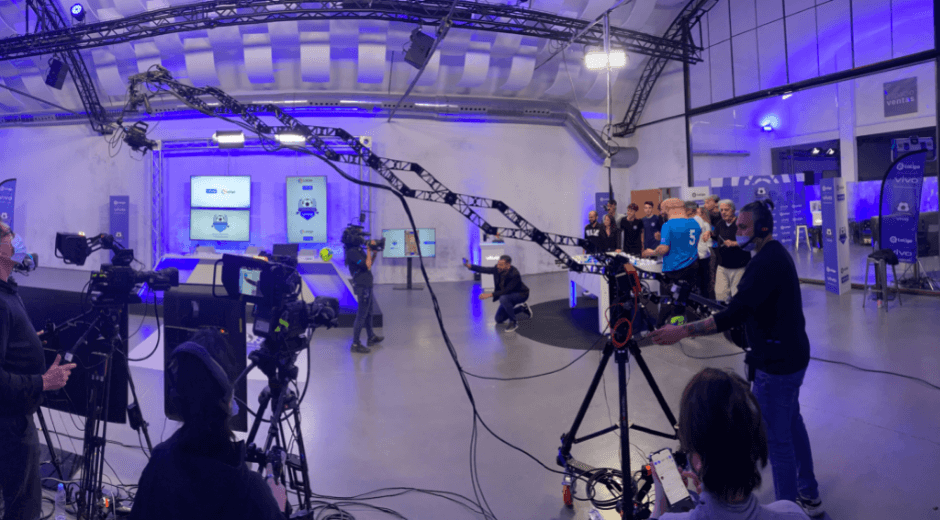 La puesta en escena fue funcional: zona de juego con una mesa de futbolín, zona de periodistas donde se colocaron los comentaristas y zona de jugadores, donde esperaban los diferentes equipos a que les tocara jugar. En este caso, la complejidad del acto residía en la parte técnica por tener que hacer una retransmisión en directo. La empresa encargada de la conexión, cobertura, streaming y realización del torneo fue Enbex. Se encargaron del diseño de todo el grafismo audiovisual, la realización multicámara y grabación; con un total de cinco cadenas de cámaras, más una grúa robotizada de siete metros y un operador con cámara al hombro. Pese a trabajar contrarreloj, la retransmisión se trató “con unos estándares de producción muy elevados”, comenta Adrián, “era prácticamente un programa de televisión”. Como curiosidad, las cámaras subjetivas que se utilizaron para grabar las reacciones de los jugadores durante los partidos eran del smartphone del Vivo X60 Pro 5G, una manera de aprovechar el impacto del evento para demostrar la calidad de sus productos. “Twitch fomenta la espontaneidad y en ciertos casos pueden producirse momentos de caos, pero tuvimos la suerte de contar con un equipo de profesionales”, asegura Adrián.