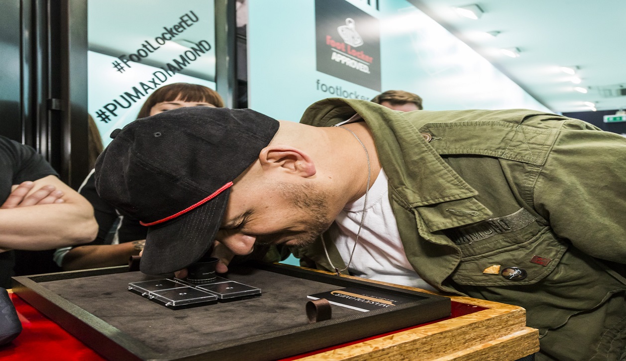El evento contó con la presencia especial de Nicholas Tershay, más conocido como Nick Diamond, skater profesional y fundador de la marca Diamond Supply Co. con la que PUMA ha colaborado para esta nueva linea de zapas. Nick Diamond fue la estrella con la que muchos asistentes se querían fotografiar y los diamantes de su apellido también tuvieron un protagonismo especial. En una vitrina había expuestos un diamante y tres circonitas, con el reto de que los asistentes tenían que adivinar cuál era el verdadero diamante y cuáles los falsos.