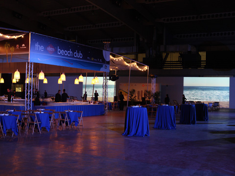 The event, which gathered more than 2.000 guests, aimed to re-create a beach environment. The whole venue was decorated in that way (with sand, hamacs and shades), with eight actors dressed as sea creatures and other as beach guards to control the event access.