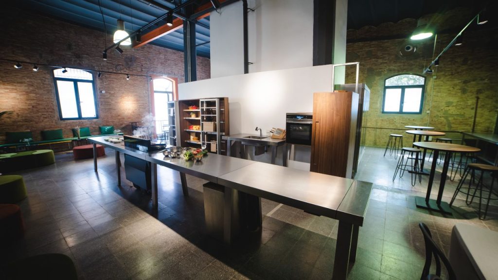 Our multifunctional industrial-style space offers you two rooms with all the necessary amenities to make your event a unique experience. The latest technology and large, fully equipped stainless steel kitchens make this 250 m2 place the ideal setting for a top-level showcooking or corporate event.