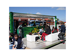 Other action aimed to address the university target. The agency Maneki Neko got inspiration from some of the best architects and designers to present a maritime container recycled as a bar, with chill-out area. This itinerant bar, in which visitors could surf the web, play with a Playstation and enjoy a Mixta, was present in several of Madrid’s universities.