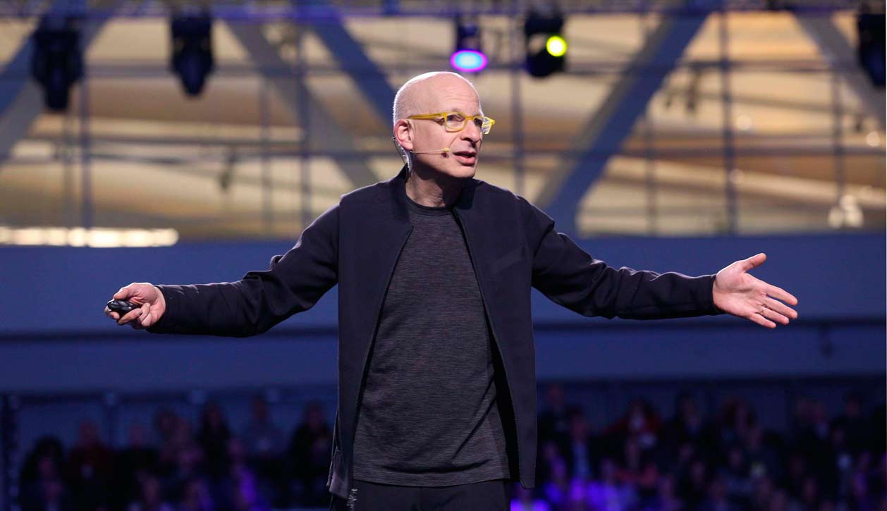 The maestro has spoken! One of the most famous marketing gurus today took center stage for the first session on Monday, explaining the need to differentiate rather than compete on price or just effectiveness, and to play on human deep yearnings, especially tribe-belonging. It may be a sacrilege to summarise so much such a cool session, sorry about that… The session took place in a cool setting, with the public split in two by a catwalk-style setup.