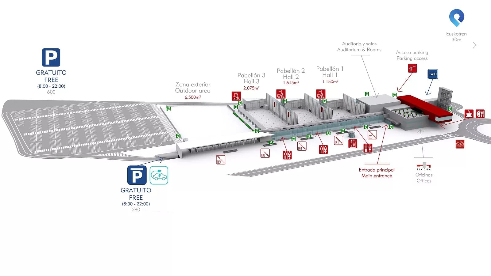 Estratégicamente situado en la Costa Vasca, a escasos 21km de San Sebastián, Ficoba ofrece unas instalaciones polivalentes y versátiles para cubrir cualquier necesidad. Con más de 20 años de experiencia en la organización y promoción de ferias, congresos y eventos, Ficoba se adapta a cada iniciativa, ya sea pequeña, mediana o grande, con proyectos llave en mano o sencillamente, alquiler de espacios. Nuestro compromiso con la sostenibilidad nos convierte/nos convirtió en el primer centro de exposiciones neutro en carbono de Europa y desde 2017, nuestro consumo de energía es 100% renovable. En 2023, renovamos todos los suelos de los pabellones para reducir al máximo la instalación de moqueta, evitando contaminar más de 53,3kilos de CO2 /m2 de este residuo y ahorrando importantes partidas presupuestarias a nuestros clientes. Llámanos y trabajemos en tu evento.
