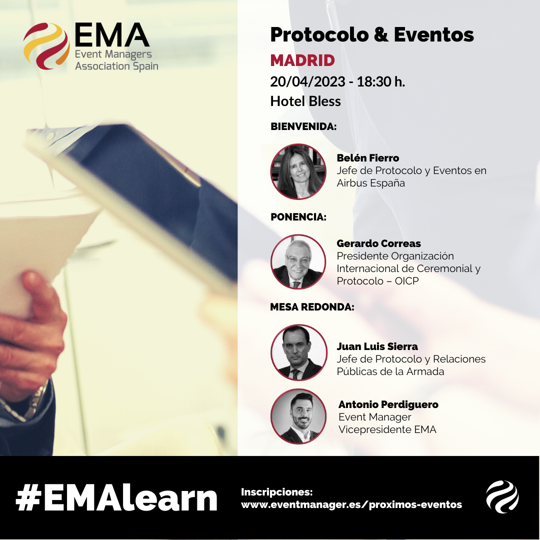 EMA (Event Managers Association Spain) organiza una formación sobre protocolo y eventos en Madrid.