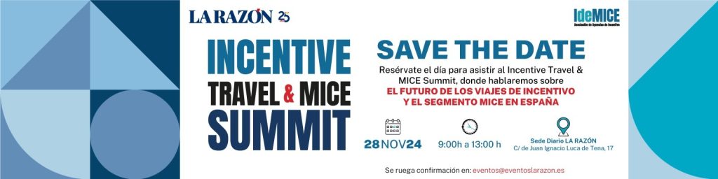 Resérvate el día para asistir al Incentive Travel & MICE Summit, donde hablaremos sobre EL FUTURO DE LOS VIAJES DE INCENTIVO Y EL SEGMENTO MICE EN ESPAÑA