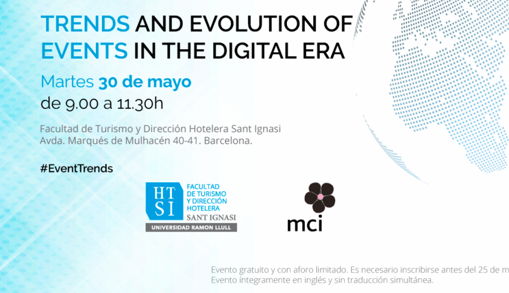 La Facultad de Turismo y Dirección Hotelera Sant Ignasi (HTSI) y MCI Group realiza la jornada Trends and Evolution of Events in the Digital Era, que se celebrará el próximo miércoles 30 de mayo de 2017 (de 9h a 11.30h) en HTSI (Avda. Marqués de Mulhacén 40-42. Barcelona).