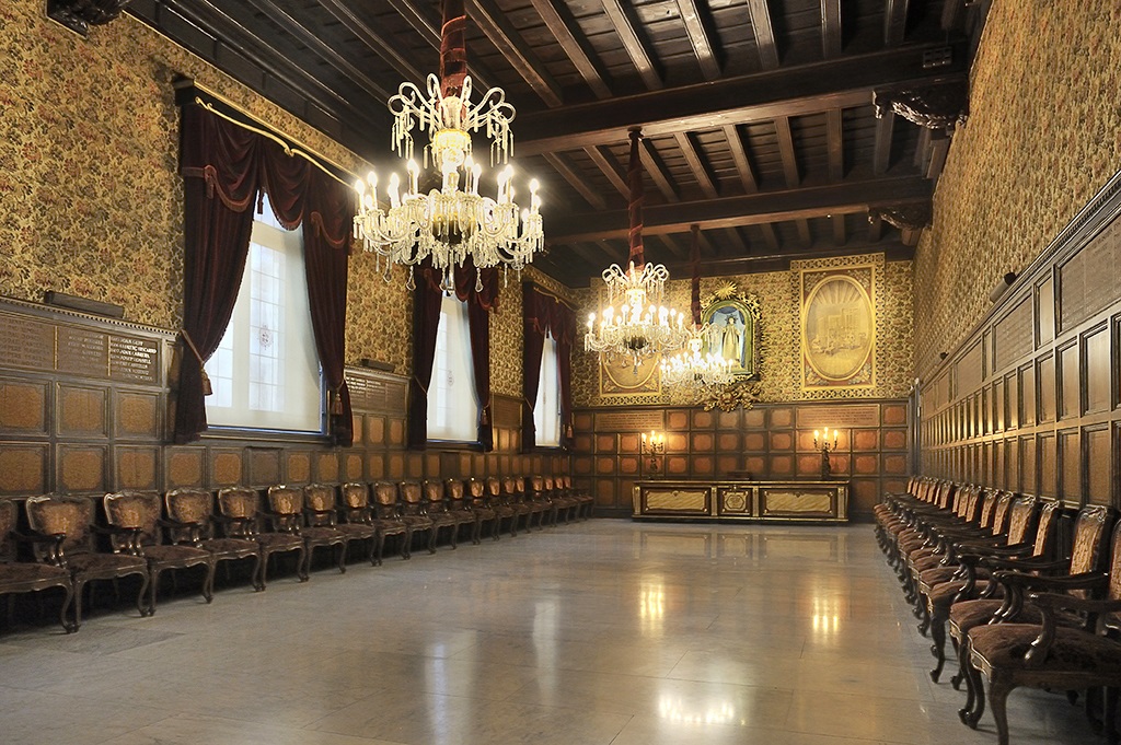 En pleno barrio de la Ribera en Barcelona y al lado del Palau de la Música Catalana, se encuentra este espacio que propone acoger eventos entre multitud de piezas de fina ebanistería y paredes forradas de seda.