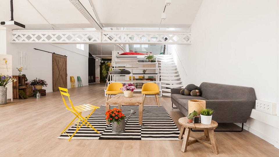 Mood Aribau cuenta con un espacio principal para reuniones y presentaciones equipado con pantalla y elevado sobre tarima, junto con una zona en altillo para reuniones privadas. El espacio cuenta con rampa de acceso para vehículos hasta la puerta y montacargas.