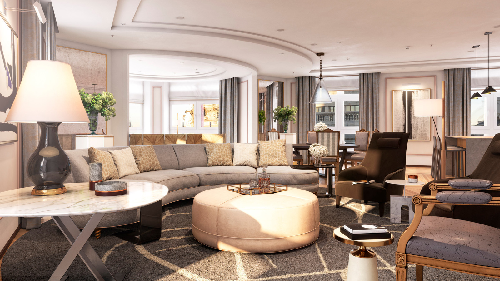 Situado en el corazón de la capital, entre la Puerta del Sol y el Barrio de las Letras, y a pocos pasos del Kilómetro Cero, el Four Seasons Hotel Madrid, cuenta por el momento, dadas las circunstancias de la pandemia, con aproximadamente 50 habitaciones disponibles que pronto serán 200. Entre ellas, quizás la más destacable, la Royal Suite, ubicada en lo que era el despacho del presidente de Banesto. Se compone de salón, estudio, aseo de cortesía, gimnasio, cocina y vestidor que conecta la habitación principal con el baño. De esta estancia, y del complejo en general, destacan sus elementos históricos originales y el balance entre el patrimonio y la modernidad. Durante el proceso de transformación de los 7 edificios que lo componen, se restauraron 3.700 piezas consideradas de interés para su posterior reutilización y puesta en valor.