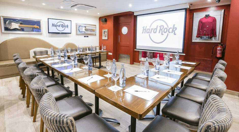 Si algo caracteriza los establecimientos de HRC son sus piezas de coleccionismo, regaladas por artistas de la talla de Eric Clapton, Pete Townsend o Debbie Harry (actualmente la colección cuenta con más de 82.000 piezas en todo el mundo) y, su buena música. En el establecimiento de Barcelona, tanto los locales como los turistas, disfrutan de la oferta de actividades que ofrece el HRC, desde conciertos en directo, hasta actividades para los más pequeños. Pero, ahora, quiere posicionarse como un referente para el sector MICE, dando a conocer toda su oferta. Esta incluye desde la posibilidad de privatizar todo el local o diferentes espacios; en total tiene capacidad para 400 personas en formato coctel, que se pueden dividir en las dos salas: The Main (300 pax) y The Lounge (100 pax), en la planta menos 1. Todas disponen de los elementos necesarios para poder realizar un evento (pantallas, proyector, microfonía, etc.).