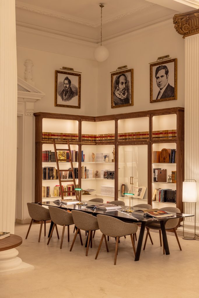 Casa de las Artes Meliá Collection se compone de cuatro edificios integrados en su interior, donde el más notable es un palacete de 1913, cuyo diseño ha sido revitalizado por el equipo de Álvaro y Adriana Sans. Este proyecto de arquitectura e interiorismo ha logrado conservar la esencia de cada uno de los espacios, en un tributo a los autores y poetas que hicieron historia en el barrio. Las áreas más nobles del hotel, adornadas con grabados de Gustave Doré inspirados en la edición del Quijote de 1869, ofrecen un vínculo con la Sociedad Cervantina y la obra de Miguel de Cervantes, logrando que el hotel se convierta en un tributo a la literatura y el arte.