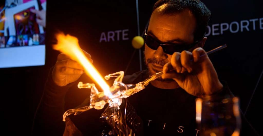 Durante el evento el artista hace una demostración en vivo de soplado de vidrio reciclado durante unas tres horas en las que creará una pieza de cristal antes el público. Para generar el calor necesario para esculpir las formas el artista solo necesita un soplete de pequeño tamaño.