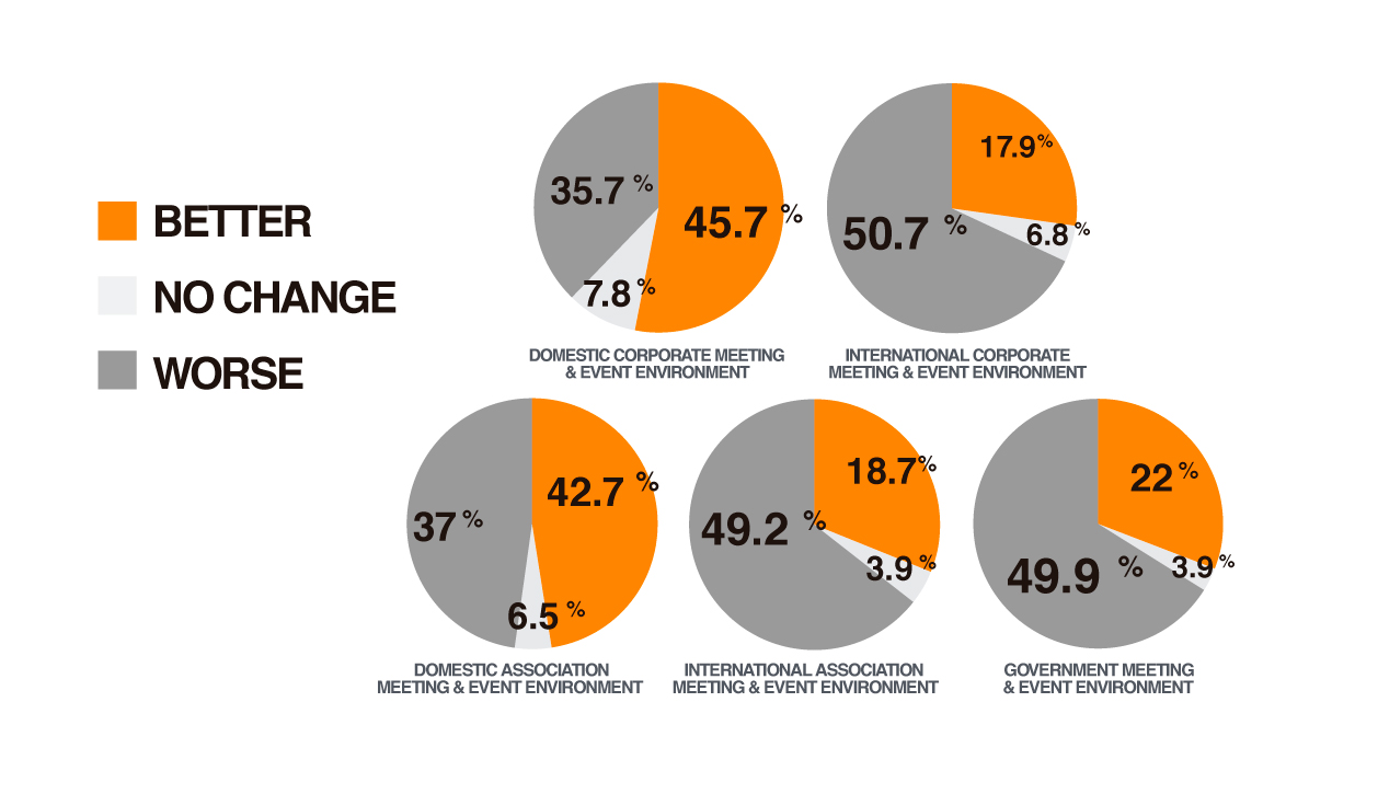 La comunidad MPI había previsto un mercado que vuelva a ser más nacional en el último informe ‘Meetings Outlook’ publicado por la asociación. A la pregunta de cómo evolucionaría cada tipo de evento siguiendo las elecciones americanas, las predicciones apuntaban a un optimismo (más gente preveía una evolución positiva que negativa) en cuanto a la evolución de todos los tipos de eventos ‘domésticos’ y pesimismo en cuanto a la de todos los eventos ‘internacionales’ (ver gráfico). ¿Momento de retracción? Es temprano para decirlo, pero sin duda hay aquí una mala noticia para EE UU y para nuestro sector en general. Y una oportunidad para otros destinos que permanecen abiertos…