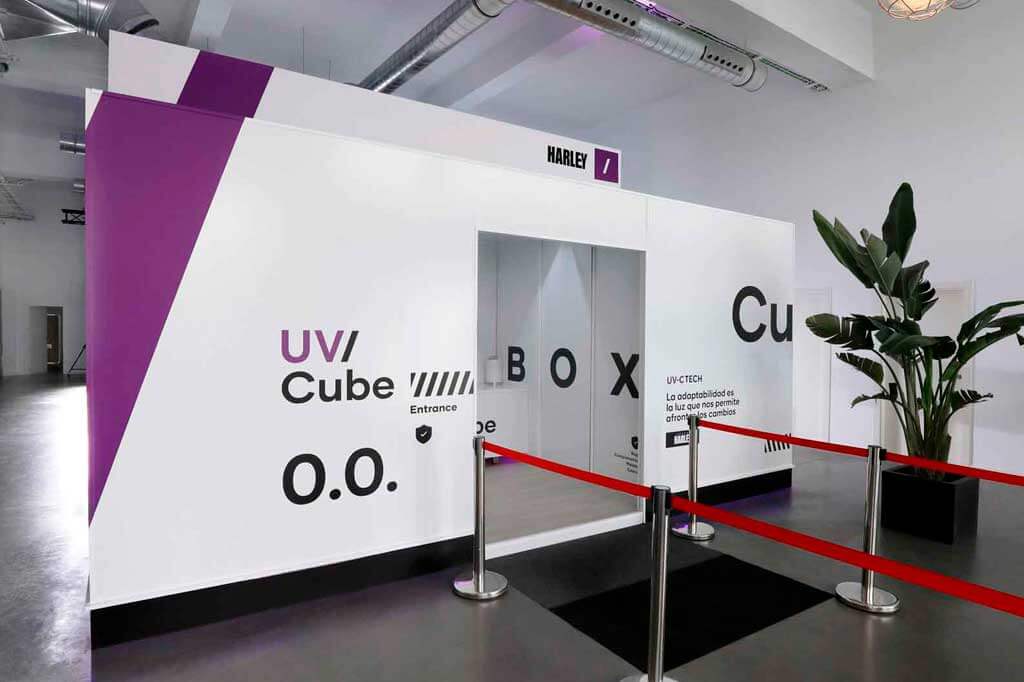Dentro de estas medidas (que puedes ver en el vídeo) destaca la cabina de desinfección que los ingenieros de Espacio Harley han creado a partir de su contenedor en entrada al Espacio Harley Ventas, como punto de paso obligatorio para cualquier persona. También el uso de drones y de módulos de desinfección llamados UV-Light, que utilizan la luz ultravioleta para la desinfección de materiales, y objetos. Las UV/Cube Box son una creación propia que la empresa está en proceso de comercializar para su venta a otros espacios.