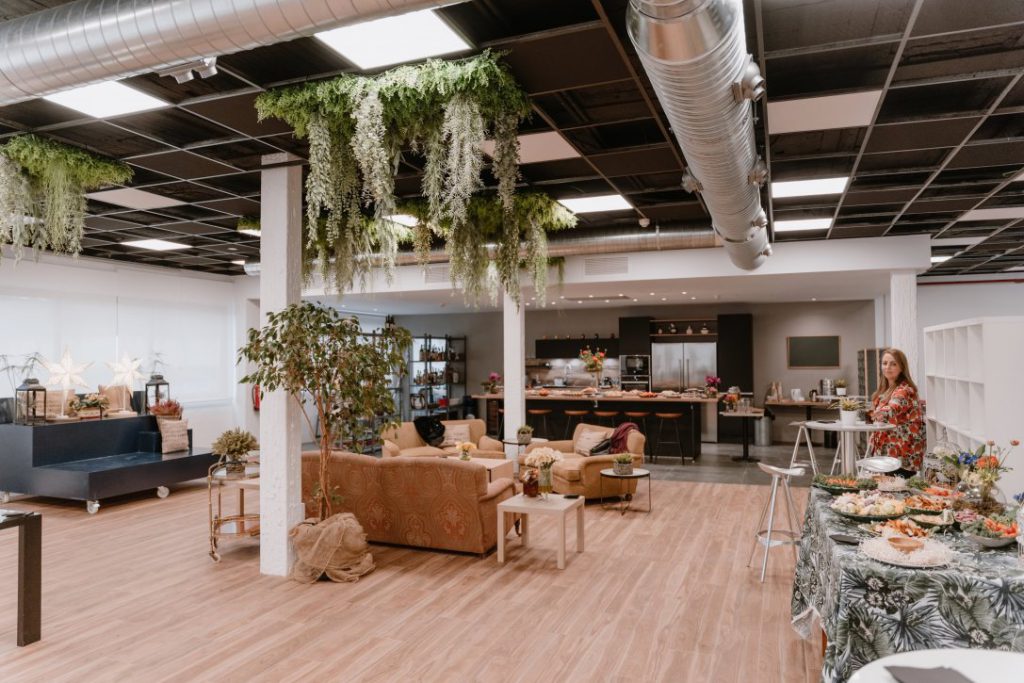 - Workshop: se trata de la sala más grande. Con 420m2, la sala Workshop es un espacio de tipo industrial con diferentes ambientes, desde una zona de gradas móviles donde impartir una charla hasta una cocina vista para hacer una cooking party. Apta para showroom o presentación de productos.