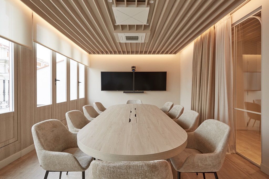 La ‘Sala Principal Madrid’ tiene una capacidad para hasta 20 invitados y 30m2, la mesa central es perfecta para reuniones individuales, y reuniones de grupo.