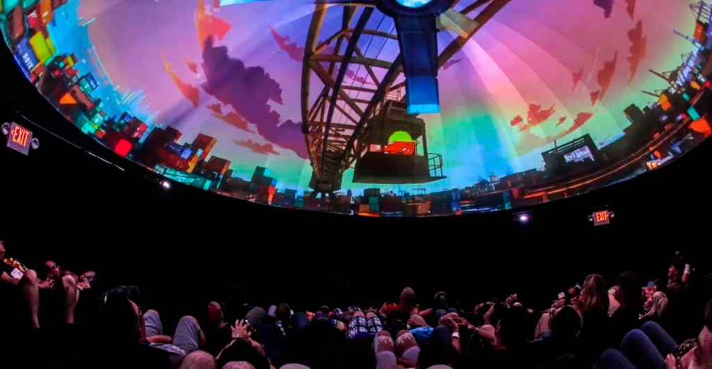 Este enorme domo contará con la opción de la instalación de un video Liner, una cúpula interna que oculta la estructura interior y mejora la calidad de las proyecciones inmersivas. También permitirá una personalización completa de la membrana con la imagen corporativa. Por último, irá acompañado de un domo menor, de 30m2, que está pensado como punto de apoyo, información y guardarropía.