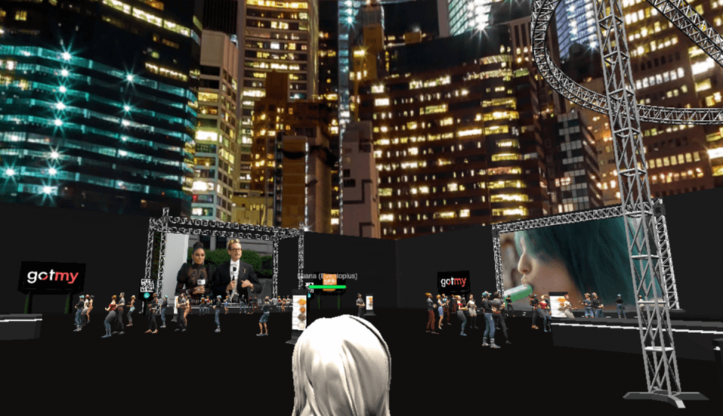 La plataforma tiene capacidad para soportar a 100.000 usuarios a la vez (aunque en la versión ordenador, para móvil hay algunas funcionalidades que hay que restringir), pero para no saturar el ordenador de los usuarios, se crean diferentes salas -con el mismo look and feel y contenido- donde acceden grupos de entre 50-100 avatares. Una vez dentro, aparecen en un espacio abierto, donde hay cuatro grandes escenarios con cuatro grandes pantallas. Allí se pueden proyectar vídeo pregrabados o hacer sesiones de live streaming, con conexiones en directo. Además, hay un escenario principal, donde suelen situarse los avatares de los representantes de la empresa (que estos sí pueden personalizarse para que se parezcan lo máximo posible a los originales), que pueden interactuar con los asistentes. El resto de pantallas están pensadas para que los colaboradores o patrocinadores del evento puedan tener presencia, con su imagen de marca e incluso adjuntando links a sus páginas web o directamente a sus ecommerce.