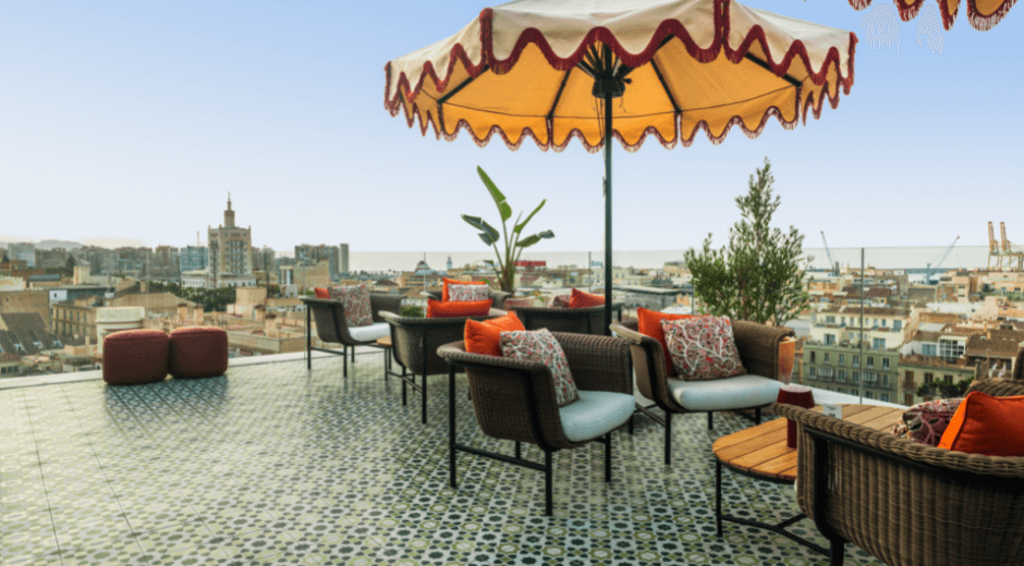 Uno de los grandes reclamos del hotel es su rooftop, ubicado en la última planta. Se trata de un espacio al aire libre con vistas 360º a toda la ciudad de Málaga, en especial de su Catedral y que alcanzan el mar. Cuenta con una sorprendente plunge pool y solárium con zona de hamacas, así como un bar con una amplia zona de mesas y, un restaurante que ofrece una propuesta gastronómica basada en platos ligeros.
