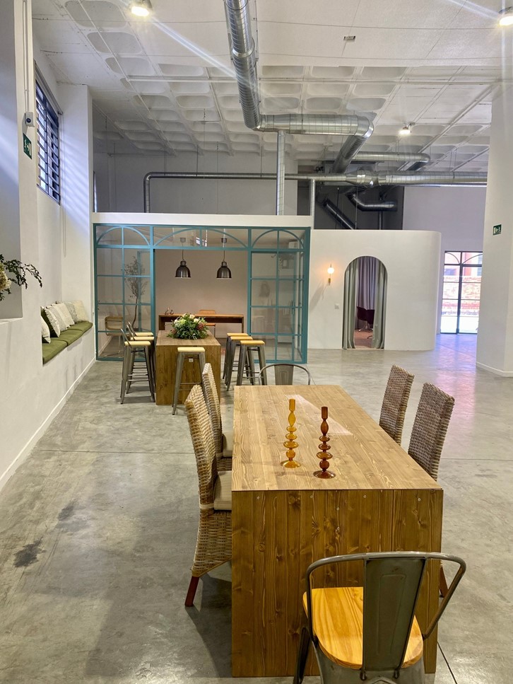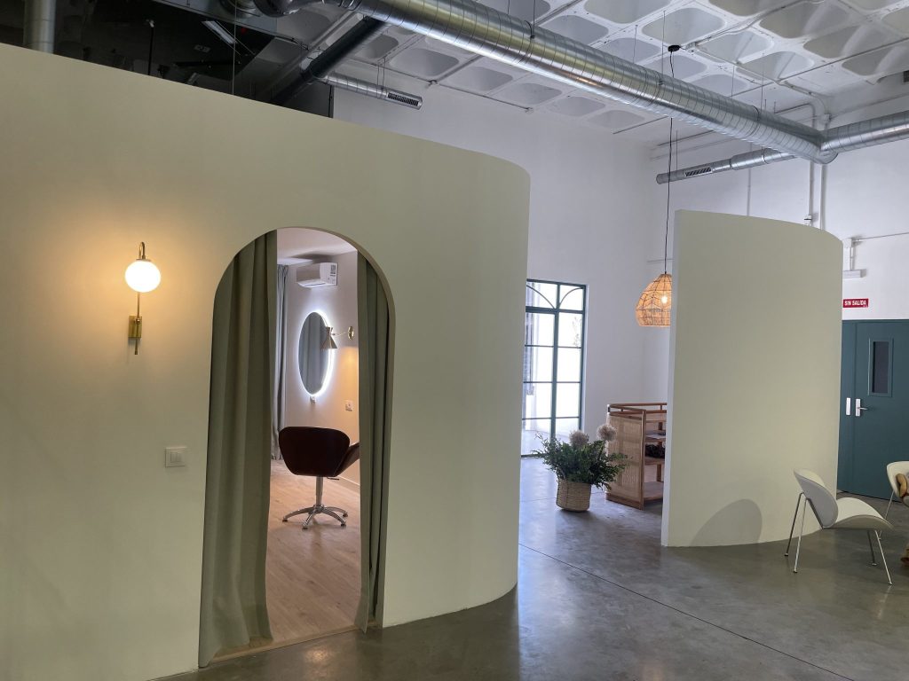 La reforma y decoración del espacio ha sido creada con líneas curvas donde la arquitectura hace de una nave industrial, una nave con bastantes posibilidades.