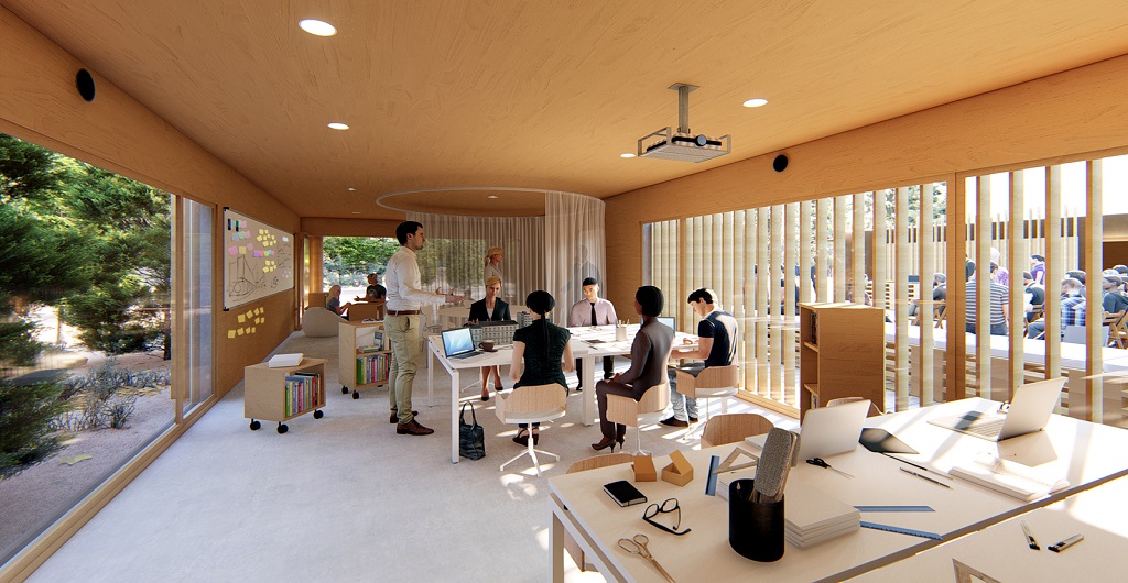 El espacio está distribuido en salas de reuniones y zonas flexibles de trabajo, en las que analizar problemas y conceptualizar soluciones, un taller de prototipado y experimentación con tecnologías, en el que dar forma a prototipos y ponerlos a prueba, y una plaza central en la que socializar y compartir conocimientos en eventos colectivos. Además, La Pinada Lab contará con senderos señalizados para realizar reuniones en movimiento y salas de reuniones naturales bajo el arbolado cercano, con el objetivo de reconectar con la naturaleza.