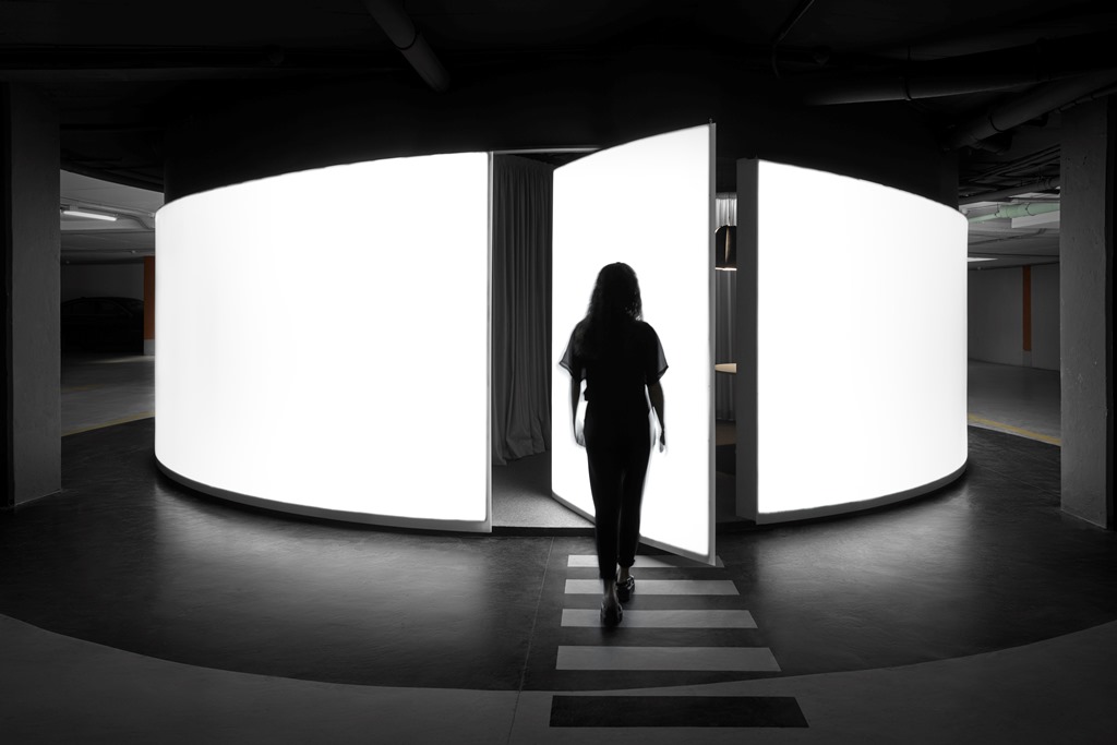 Mejor montaje de una exposición efímera no itinerante. Emporia Oro para Showroom 360º, de BOMA Estudio. Showroom 360º es un proyecto ambicioso en el que se busca emplazar el nuevo espacio de Resuinsa en el garaje de sus oficinas. Para ello, se construye una fachada curva lumínica de una pieza que contrasta con el lugar, y dentro se genera un recorrido circular mediante un juego textil que permite recorrerlo como un museo.