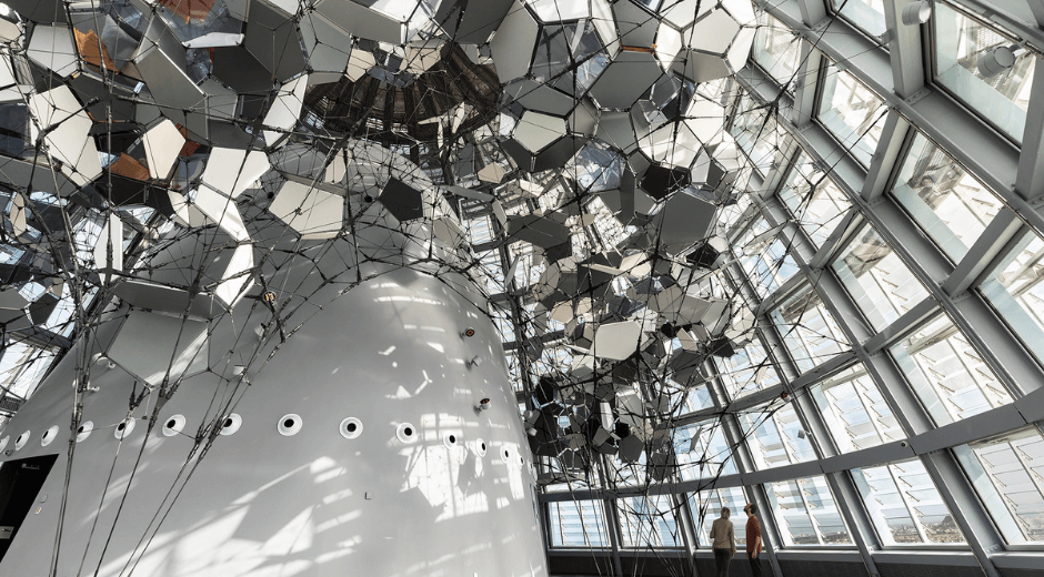 - El mirador: En este segundo nivel, se sube hasta la planta 30 de la torre donde se encuentra la cúpula que ofrece unas espectaculares vistas 360º de la ciudad. Allí es donde se encuentra la excepcional instalación artística multisensorial del artista contemporáneo Tomás Saraceno.