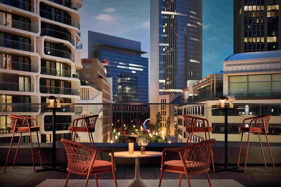Inspirado en Nueva York y su espectacular arquitectura, NH Collection Frankfurt Spin Tower (foto de portada) se ubica en los primeros 20 de los 31 pisos de la nueva torre, diseñada por el arquitecto alemán Hadi Teherani. El hotel goza de una ubicación céntrica en Güterplatz, en la intersección del distrito financiero, el recinto ferial y la estación de tren.
