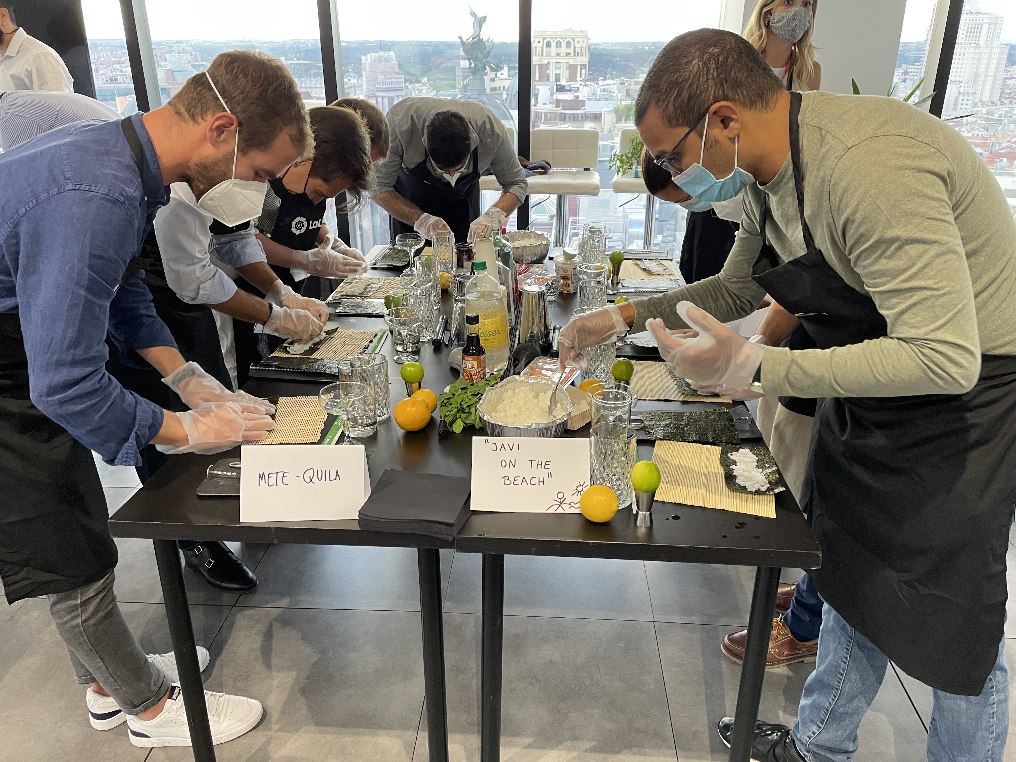 En este evento reciente para LaLiga con 60 asistentes organizaron un maridaje de sushi y cócteles que acabó con un concurso en el que, por equipos, se tenían que inventar un cóctel y un sushi y presentarlo ante el jurado.
