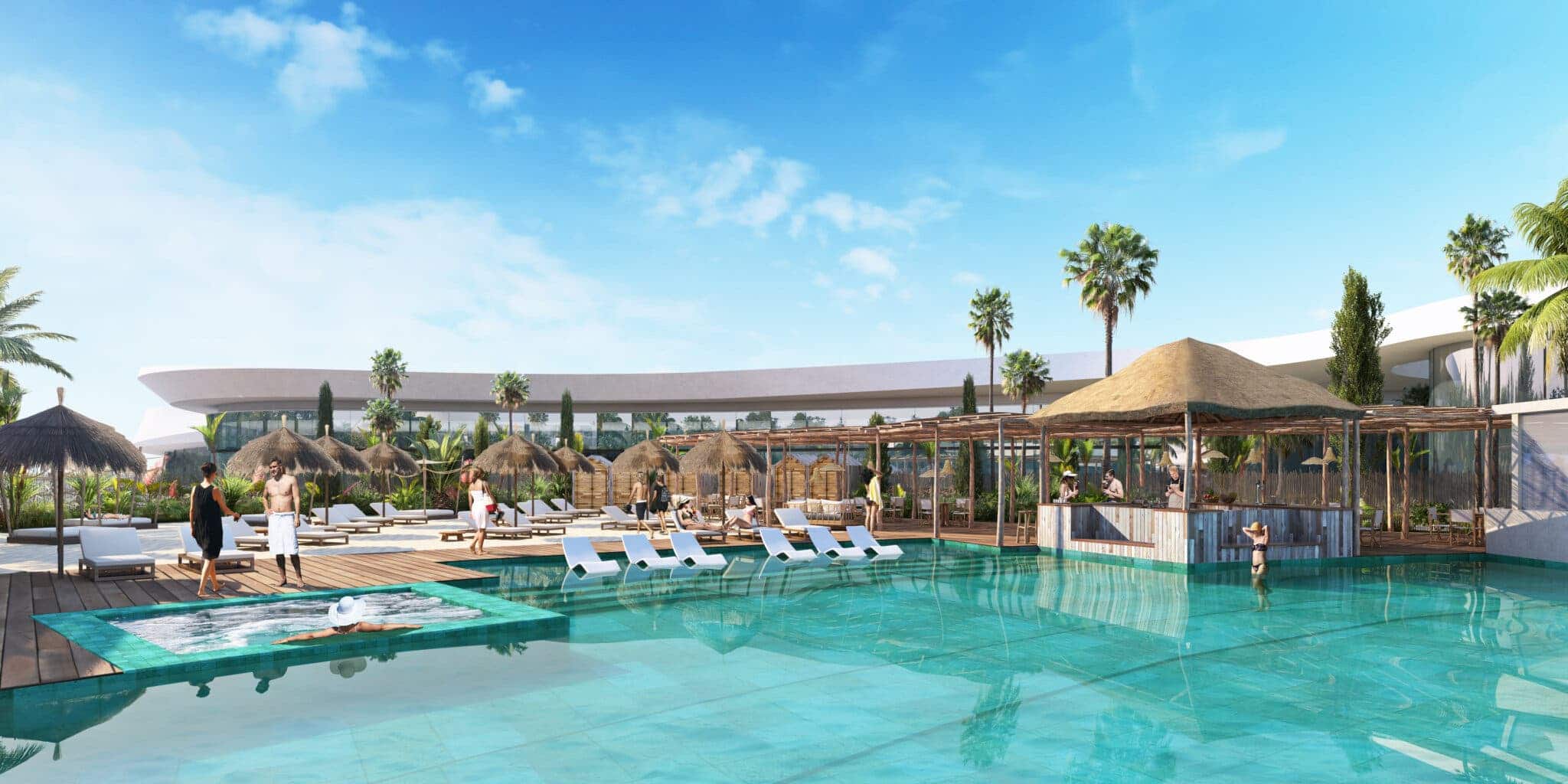 Sin embargo, lo más exótico llega de la mano de dos lagos de 10.000m2 rodeados de palmeras y cascadas y una playa artificial de más de 6.000m, que incorpora jacuzzi, duchas, aseos y una piscina infinity que termina en una cascada. Catalogada como la más grande de Europa, esta playa de Madrid tendrá un beach club imitando a la costa real.