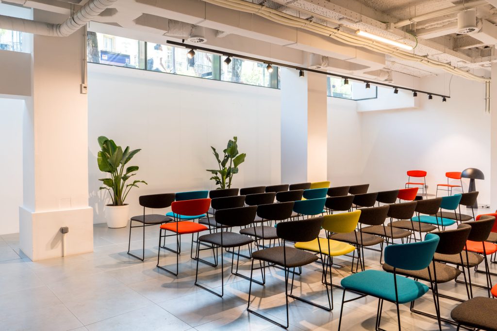 Su capacidad son 80 personas en teatro y 120 en cóctel. Y no tienen catering ni audiovisuales en exclusiva.