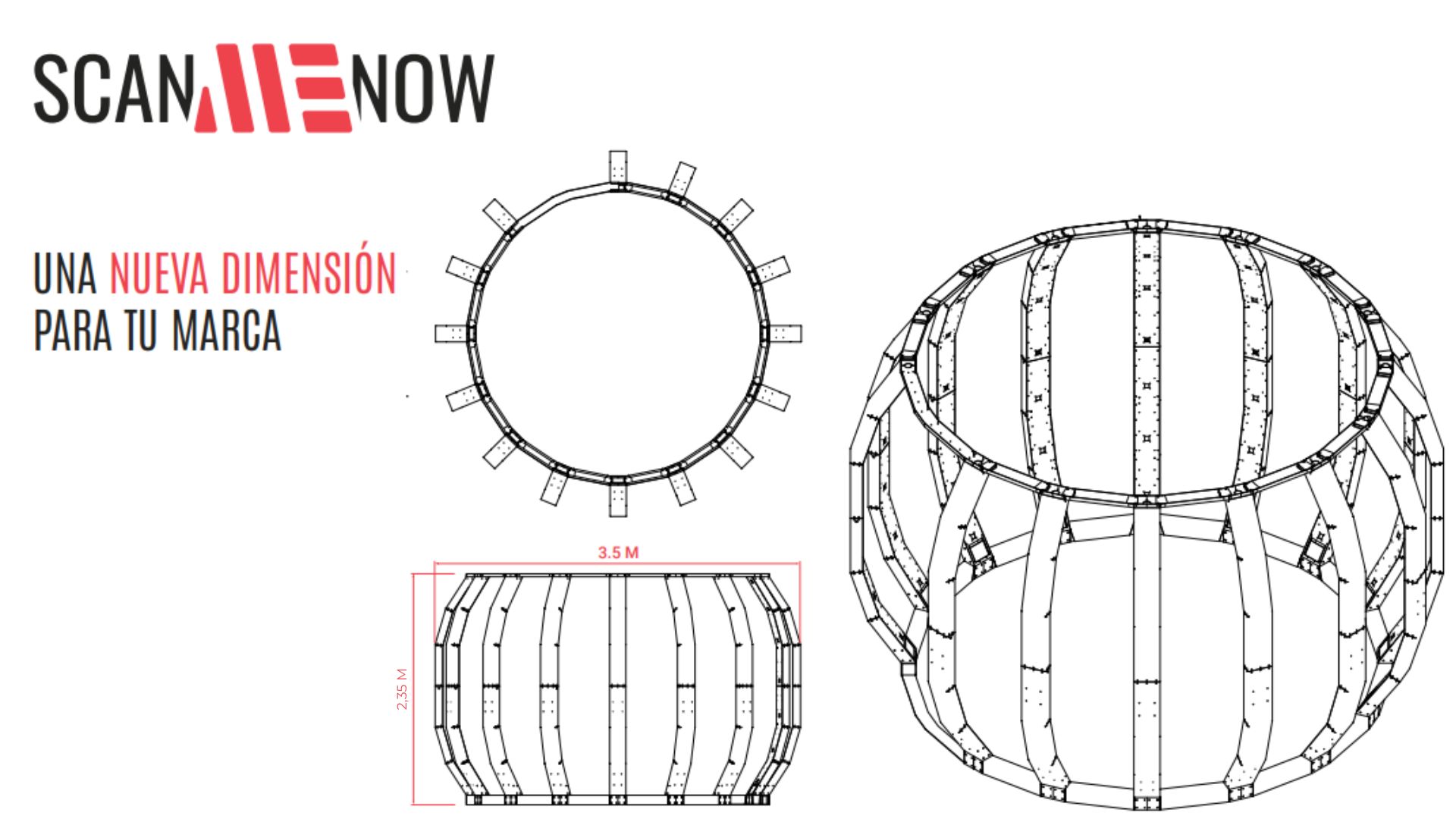 No hay que juzgar un libro por su portada. Pero nos encanta hacerlo. El diseño de Scan Me Now lo primero que consigue es atraer miradas y eso ya es un ingrediente indispensable para cumplir su cometido. Se trata de una estructura circular de 3,5 metros de diámetro por 2,35 metros de altura. Dos círculos forman la base y la parte más alta de la estructura que se unen con 15 postes curvos en los que se encuentran siete cámaras por poste que cuentan con una resolución de 12 megapíxeles. Además, la particularidad de la instalación se ve completada por las luces LED que recubren el interior de los postes y que hacen que las imágenes no tengan que ser retocadas posteriormente ya que esta tecnología no admite su edición. La potencia necesaria para la instalación no supera los 2025W aproximadamente.