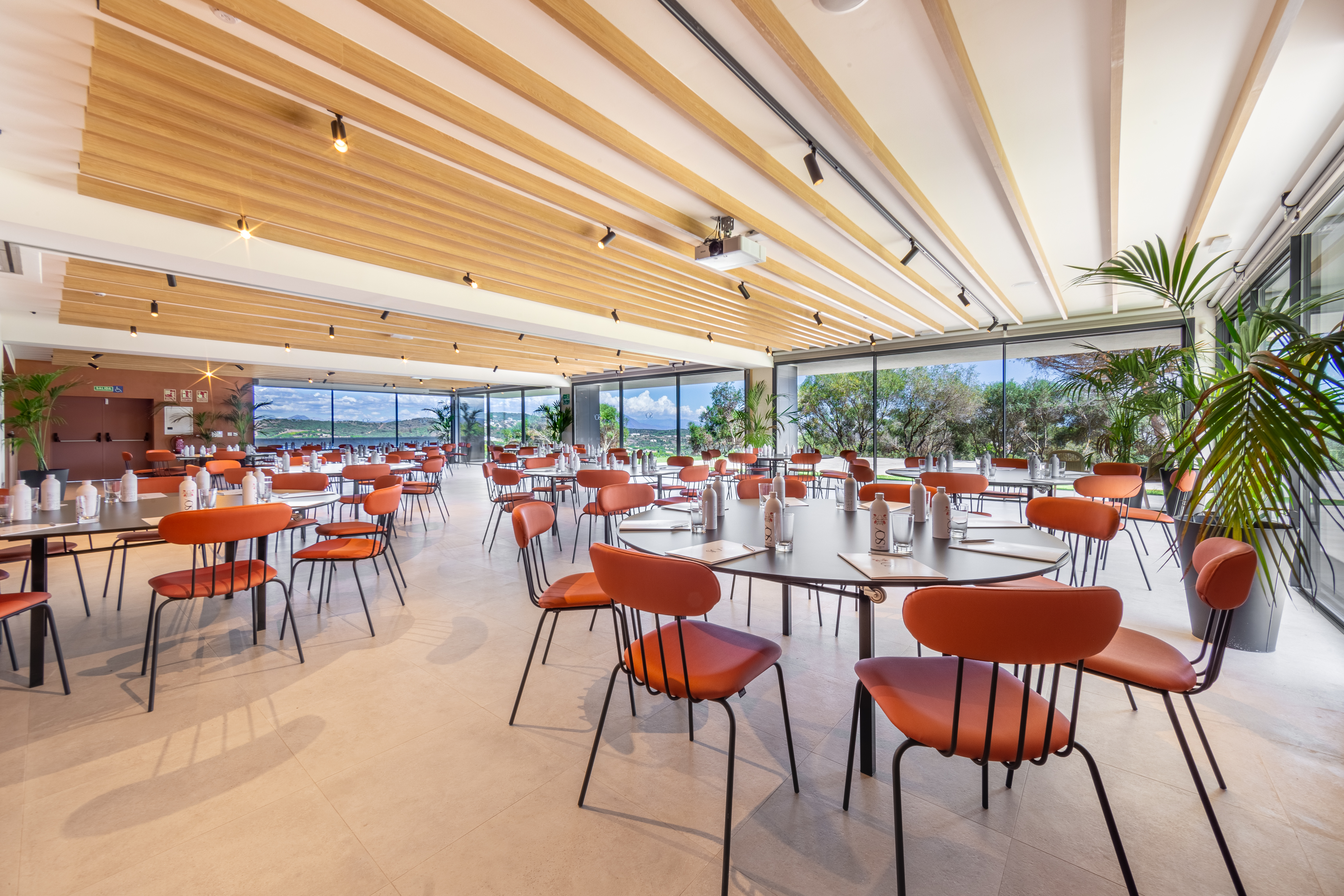 La sala de conferencias, social room, con más de 500m2, es panelable, con la opción de dividir a los asistentes en varios grupos y de trasladar una parte del programa del evento a la terraza. En el caso de eventos más pensados para pequeños grupos, Chloé Brandalac, director of sales & marketing de SO/Sotogrande, nos explica que el auditorio exterior rodeado de una zona verde encajaría más para presentaciones, reuniones de equipo o espectáculos en petit comité.