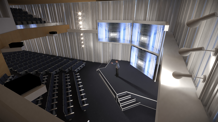 El auditorio, con capacidad para más de 200 asistentes, está preparado para eventos que exigen un alto nivel técnico. Pantalla LED de gran formato, sonido envolvente, iluminación, cabinas de traducción y conexión para streaming permiten acoger presentaciones, debates o eventos híbridos. Además, cuenta con zonas de recepción y descanso que favorecen el networking.