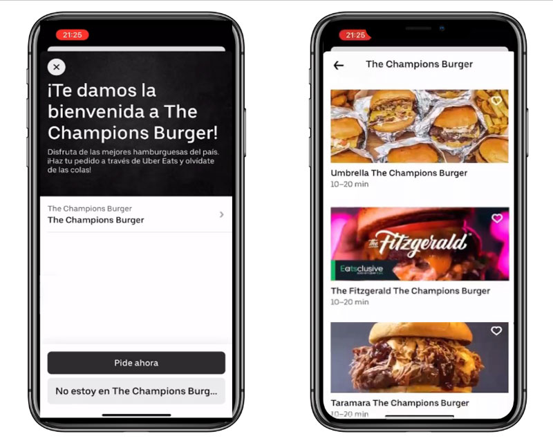 ¿Cómo funciona? El usuario, una vez dentro del venue del evento, podrá consultar la oferta gastronómica de los restaurantes disponibles de Uber Live. Nada más abrir la app de Uber Eats, la plataforma le mostrará las burgers de los 20 food trucks de The Champions Burger, entre las que se encuentran las de The Fitzgerald, Umbrella Sociedad de Hamburguesas, Soul Coffee o Circo.