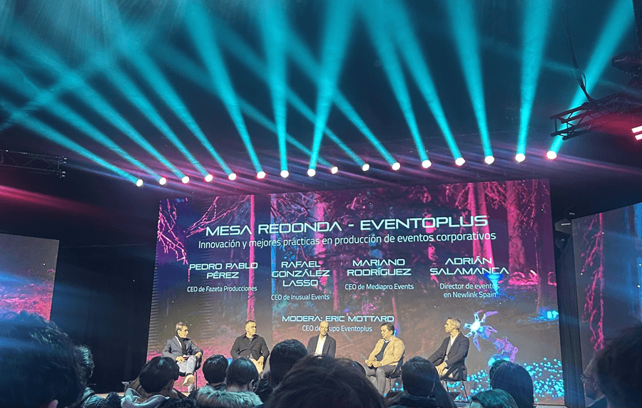 Tuvimos la oportunidad de organizar una mesa redonda: “Innovación y mejores prácticas en producción de eventos corporativos”, donde participaron Pedro Pablo Pérez, CEO de Fazeta Producciones, Rafael González Lasso, CEO de Inusual Events, Mariano Rodríguez, CEO de Mediapro Events y presidente de AEVEA, y Adrián Salamanca, director de eventos en Newlink Spain. Un debate apasionante que podrás disfrutar pronto en nuestro canal de podcasts (la generación de contenidos con partners es una buena idea, más aún con un medio de comunicación que maximiza el alcance…).