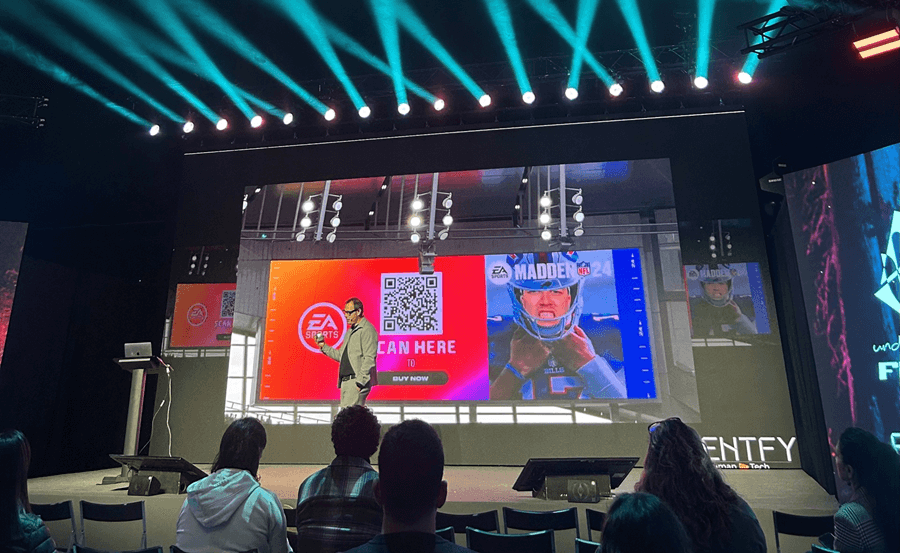 Sergio Pozo, CEO de Eventfy, presentó su nuevo proyecto mediante el enunciado: “FAN ENGAGEMENT: Reinventando la experiencia”. Partiendo de la kiss cam de la NFL en América, propone incorporar interacción a tiempo real con el público desde el móvil de cada uno, a través de un software que toma como base el escaneo de códigos QR. Esta experiencia tiene diferentes configuraciones: se pueden transformar las fotos del espectador en imagen IA, hacerles participar en quizz en directo, e incluso activar las linternas de los móviles al ritmo de una canción. La premisa es actualizar y mejorar un concepto usado en todos los escenarios del mundo, llevarlo a la interacción directa con el móvil, y conjugar imagen real con inteligencia artificial.