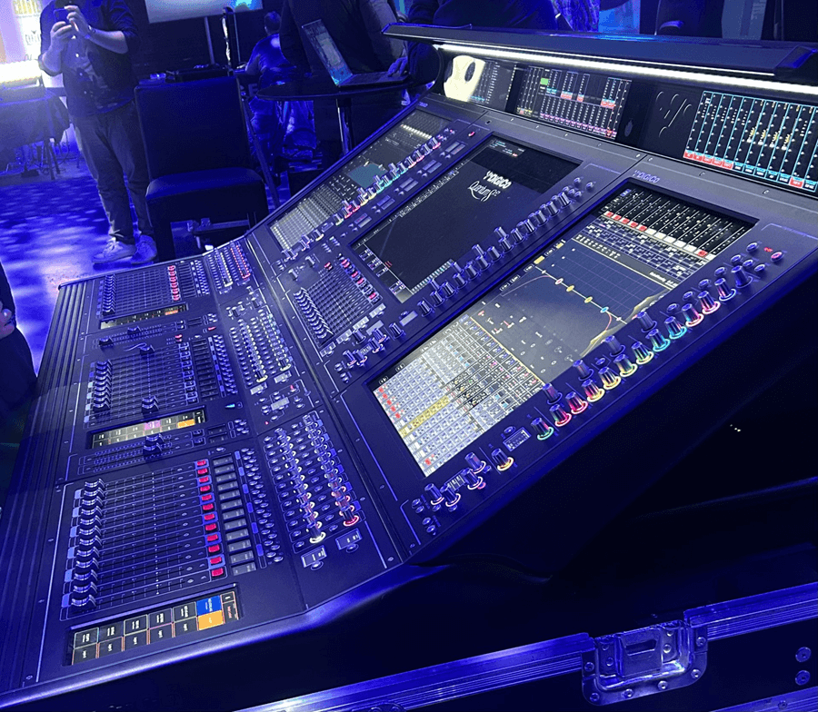 Otra empresa presente fue DiGiCo, quien dispuso una de sus mesas de mezclas Quantum con faders físicos y pantallas de alta definición para una mejor personalización y rendimiento.