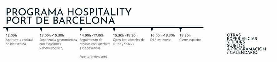 Una ubicación extraordinaria con las mejores vistas al campo de regatas con terraza interior y rooftop. Acceso exclusivo para los invitados de Hospitality Port de Barcelona. Abierto durante las horas de competición. Open bar, cócteles y tapas elaboradas por Food&Mambo.